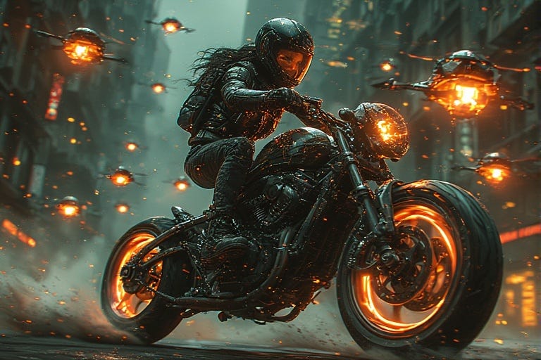 Juno rolled her eyes as she pressed a button on Mona as the bike began to descend, the back of it began to change shape, parts shifting and moving to form thrusters.